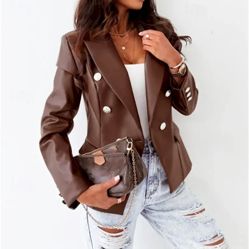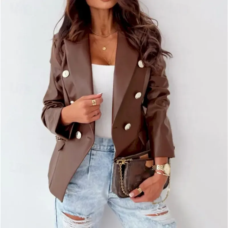 Women’s Blazer Comfortable Pocket Buttons Elegant Fashion Outdoor Plain Going out Casual Daily Weekend Cardigan Regular Lapel Regular Fit Long Sleeve Outerwear Black Wine Blue Spring Fall
