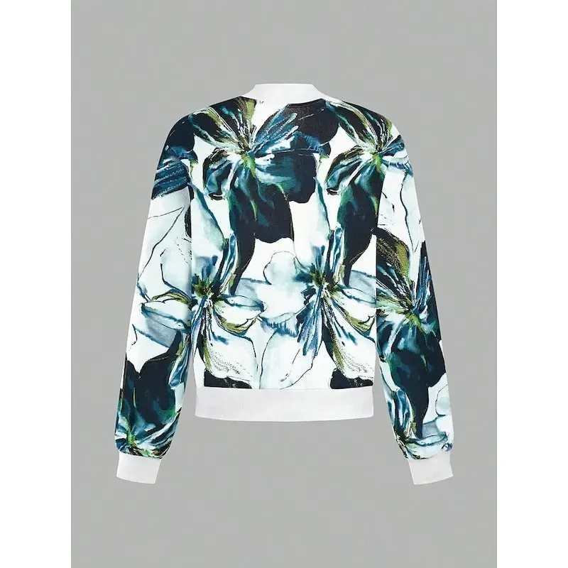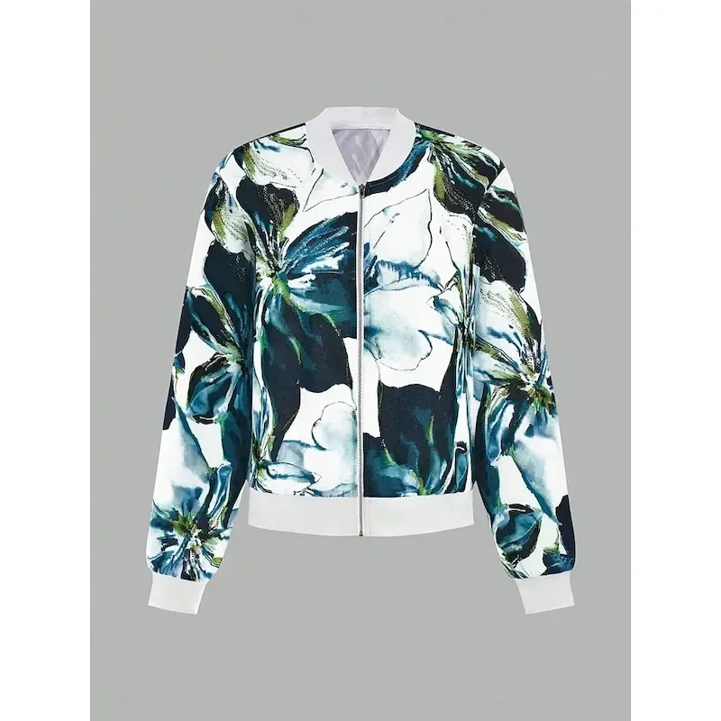 Women’s Bomber Jacket Casual Jacket Comfortable Breathable Zipper Print Casual Floral Vacation Street Casual Daily Wear Zipper Short Stand Collar Regular Fit Long Sleeve Outerwear Purple Green Summer