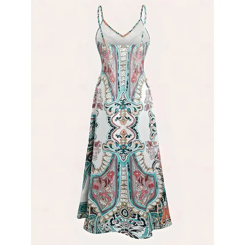 Women’s Midi Dress Sundress A Line Dress Slip Dress Vacation Casual Vacation Daily Going out Regular Fit Ombre Graphic Paisley Sleeveless V Neck Light Green Summer Spring