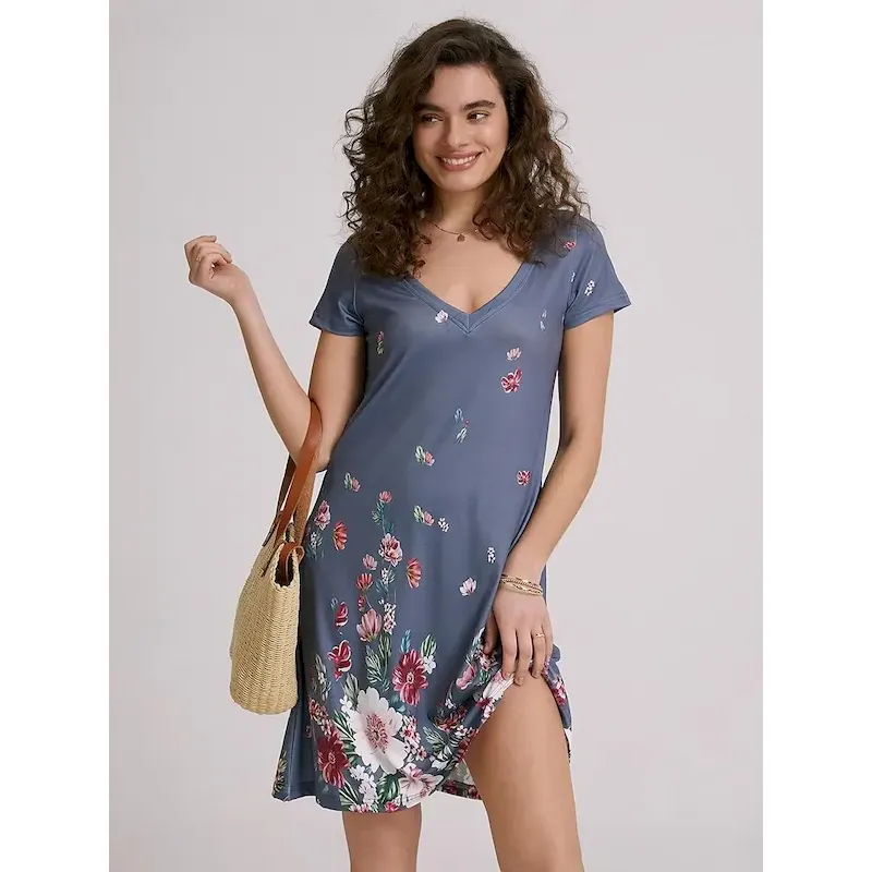 Women’s Mini Dress Casual Dress Petite Dress T Shirt Dress Tee Dress Sundress Basic Outdoor Vacation Birthday Regular Fit Floral Short Sleeve V Neck Light Blue White Light Green Red Summer
