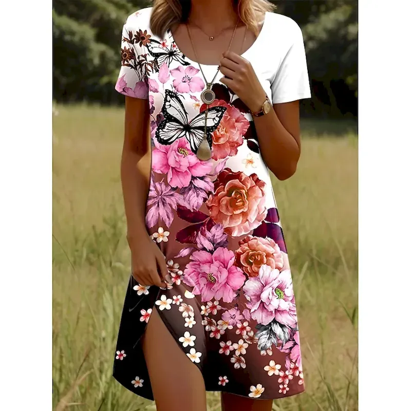 Women’s Mini Dress Casual Dress T Shirt Dress Tee Dress Sundress A Line Dress Stylish Casual Beach Regular Fit Ombre Floral Graphic Short Sleeve Crew Neck Light Pink Pink Wine Summer Spring