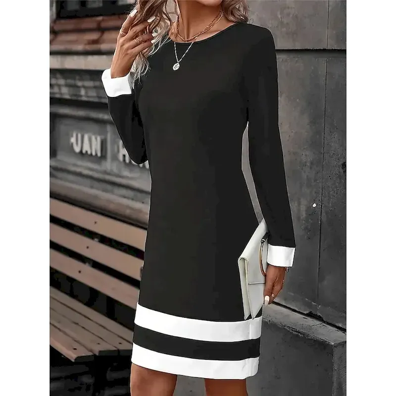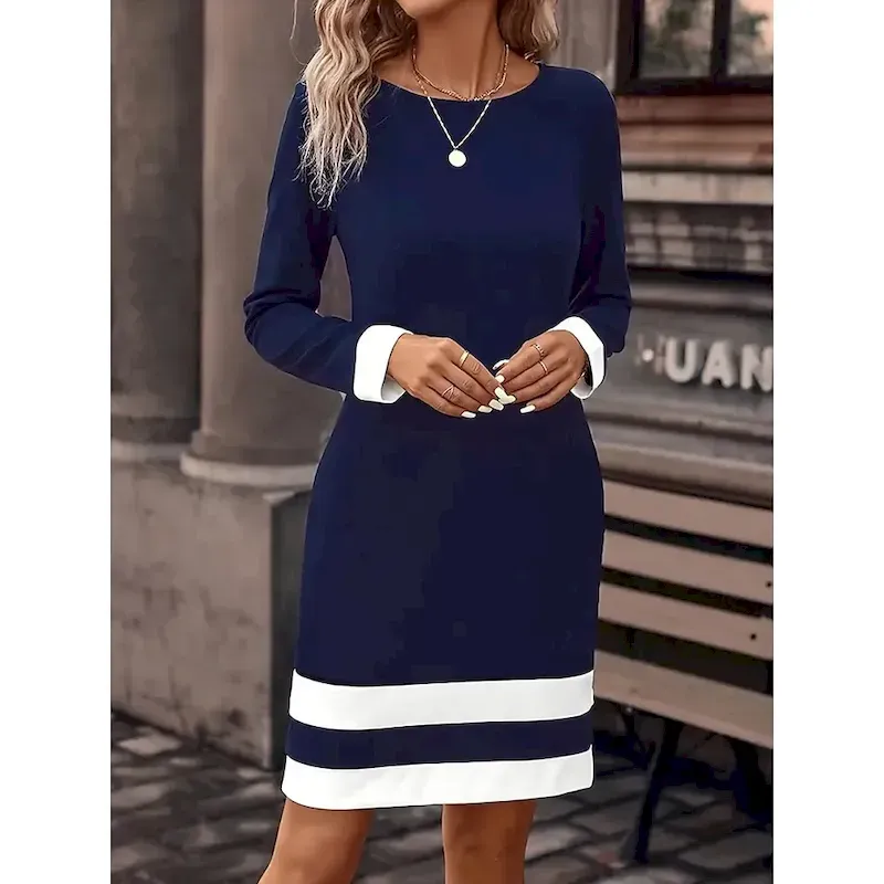 Women’s Mini Dress T Shirt Dress Tee Dress Shift Dress Summer Dress Vacation Casual Party Daily Regular Fit Graphic Color Block Long Sleeve Crew Neck Black Navy Blue Spring Fall Winter