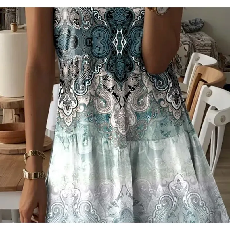 Women’s Mini Dress Vintage Dress Casual Dress Petite Dress Sundress Bohemia Vacation Casual Vacation Daily Holiday Regular Fit Graphic Geometric Paisley Sleeveless Crew Neck Blue Summer