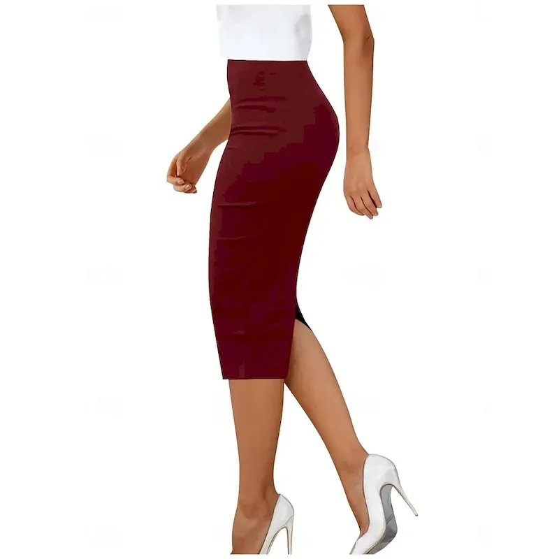 Women’s Skirt Pencil Skirt Fashion Casual Knee-length High Waist Skirts Plain Split Ends Stretchy Street Daily Wine Black White Royal Blue Spring Polyester Cotton Blend