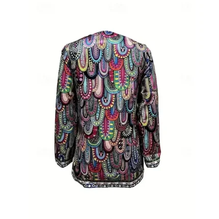Women’s Jacket Party Pocket Geometric Windproof Fashion Regular Fit Outerwear Long Sleeve Fall Colorful M
